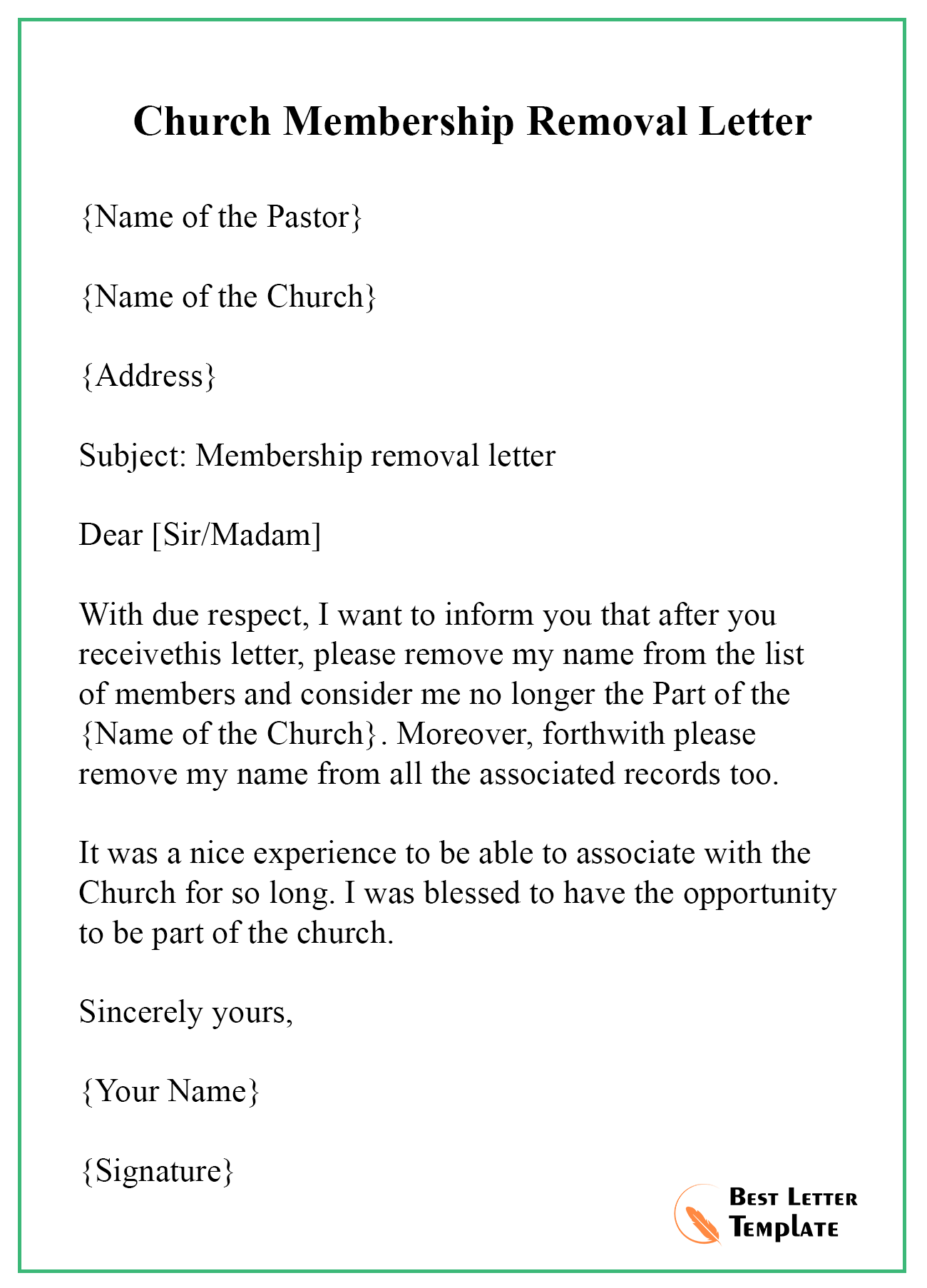 Church Membership Withdrawal Letter Template …