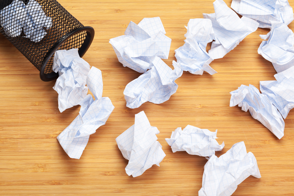 Writing Concept - Crumpled Up Paper Wads with a Sheet of White Paper ...